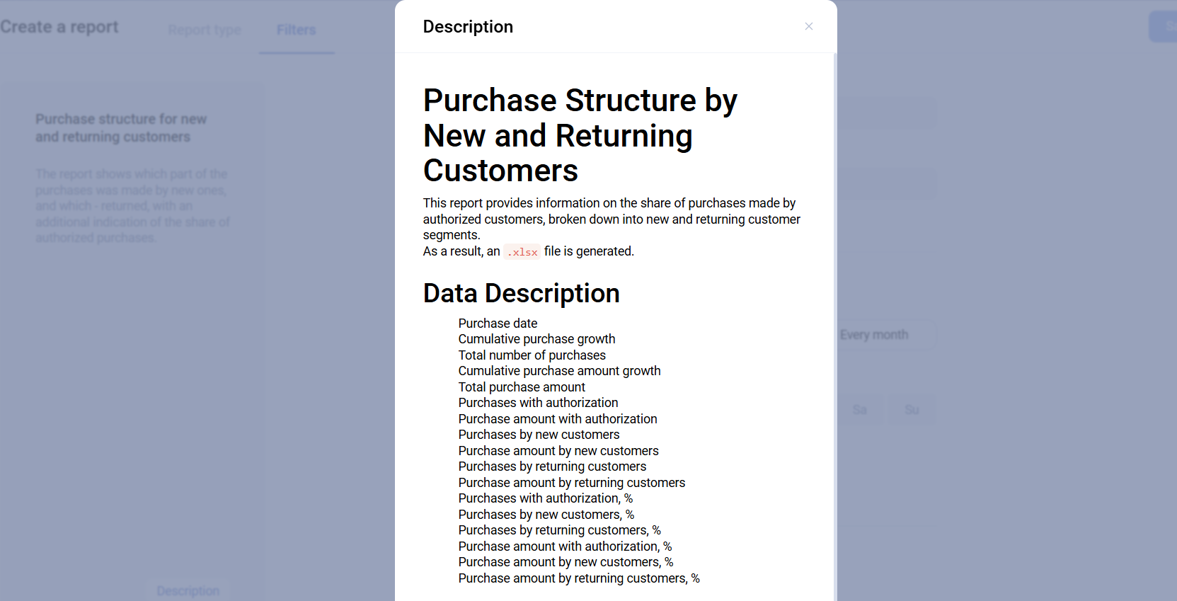 Each report also has a detailed description. An example is shown below: