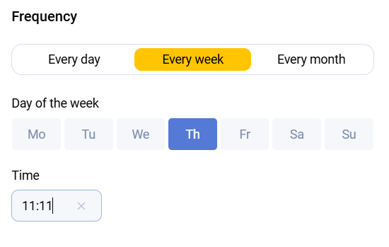 When a recurring report is configured, an additional block appears on the Filters tab, allowing you to set the export frequency.