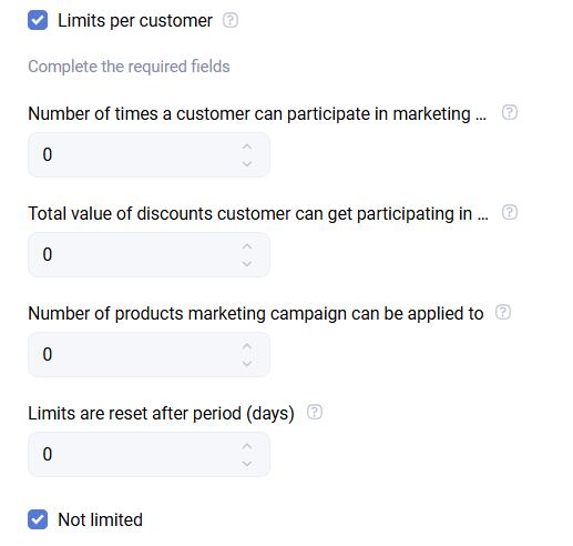 This limit does not apply if, on the next step, Audience, you choose to apply the promotion to all clients, including those who are not loyalty program members.