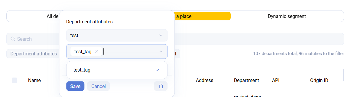 You can also choose a dynamic department segment. This allows all departments with a specified attribute to be included automatically. When a new department appears, it is enough to assign the required attribute, and the promotion does not need to be edited.